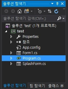 }위와 같이 코드를 수정합니다. SplashForm이 종료될 경우 Form1이 실행되게 됩니다.
