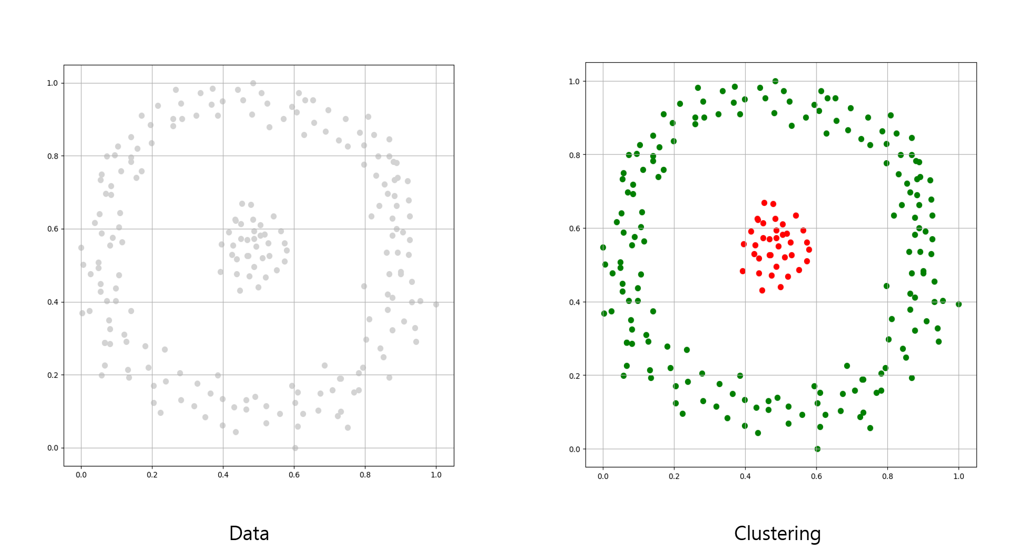 밀도 기반 군집화(Density-based spatialclustering of applications with noise, DBSCAN)는 K-평균 군집화 방식과는 다르게 군집화를 진행합니다.