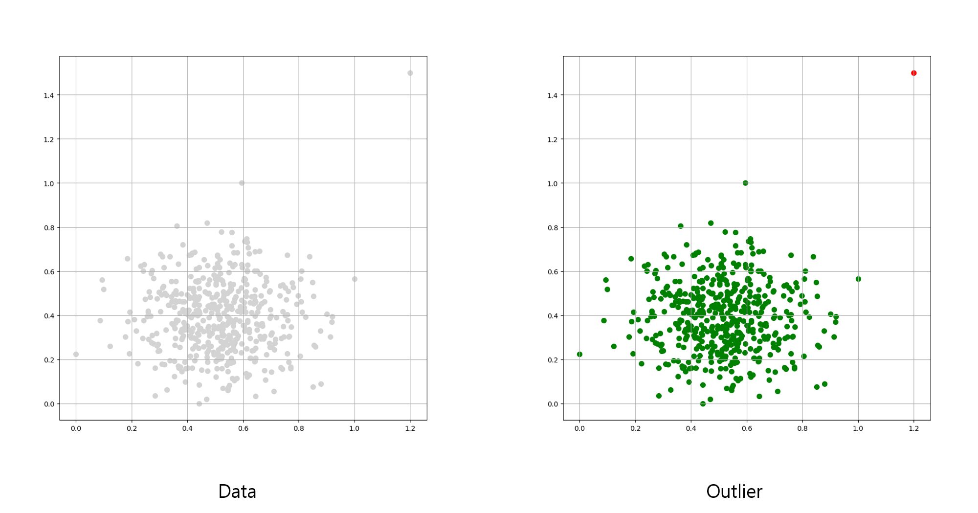 여기서, 일반적인 데이터는 정상치(Inlier)로 부르며 비정상적인 데이터는 이상치(Outlier)로 부릅니다.