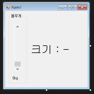도구상자에서 GroupBox, VScrollBar, Label을 Form1에 생성합니다.