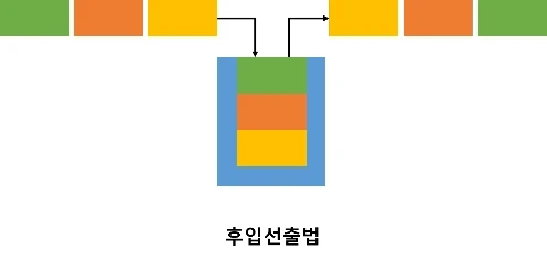 후입선출법(Last In First Out)이란 먼저 들어온 값이 나중에 나가는 방식입니다.