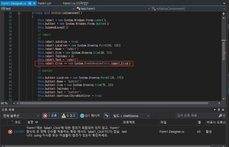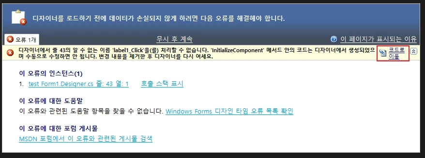 C# 강좌 : 제 23강 - 디자이너 오류 수정하기