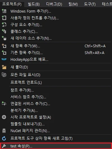상단의 메뉴에서 프로젝트 → 프로젝트 속성으로 들어갑니다.