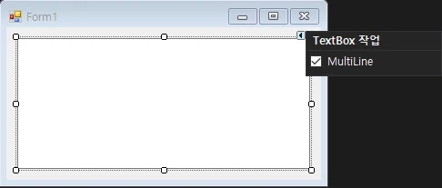 도구상자에서 TextBox를 Form1에 생성하며, MultiLine에 체크합니다.