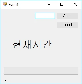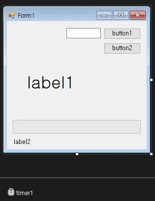 도구상자에서 Timer, TextBox, Button, Label, ProgressBar을 Form1에 생성합니다.