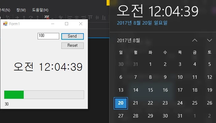 label2.Text = Convert.ToString(progressBar1.Value);label1에 현재 시간을 띄웁니다. label2에는 progressBar의 값을 표시합니다.