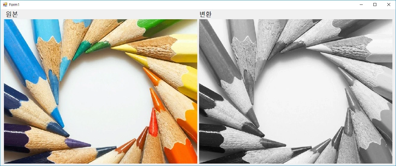 ColorConversion.BgrToGray를 이용하여 Bgr색상을 Gray색상으로 변환합니다.