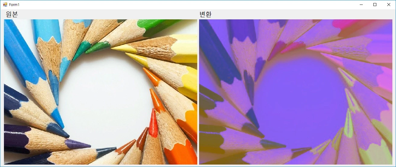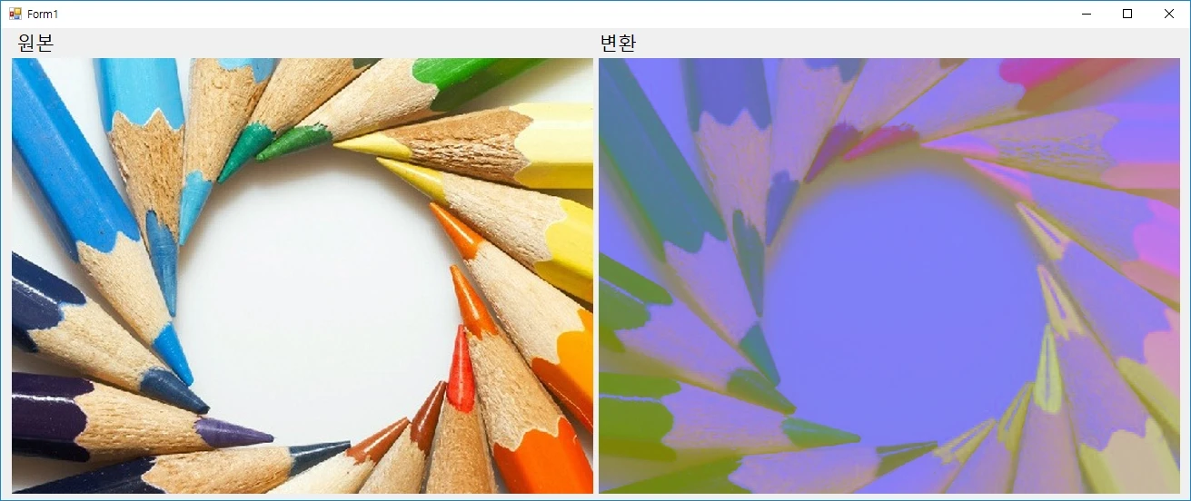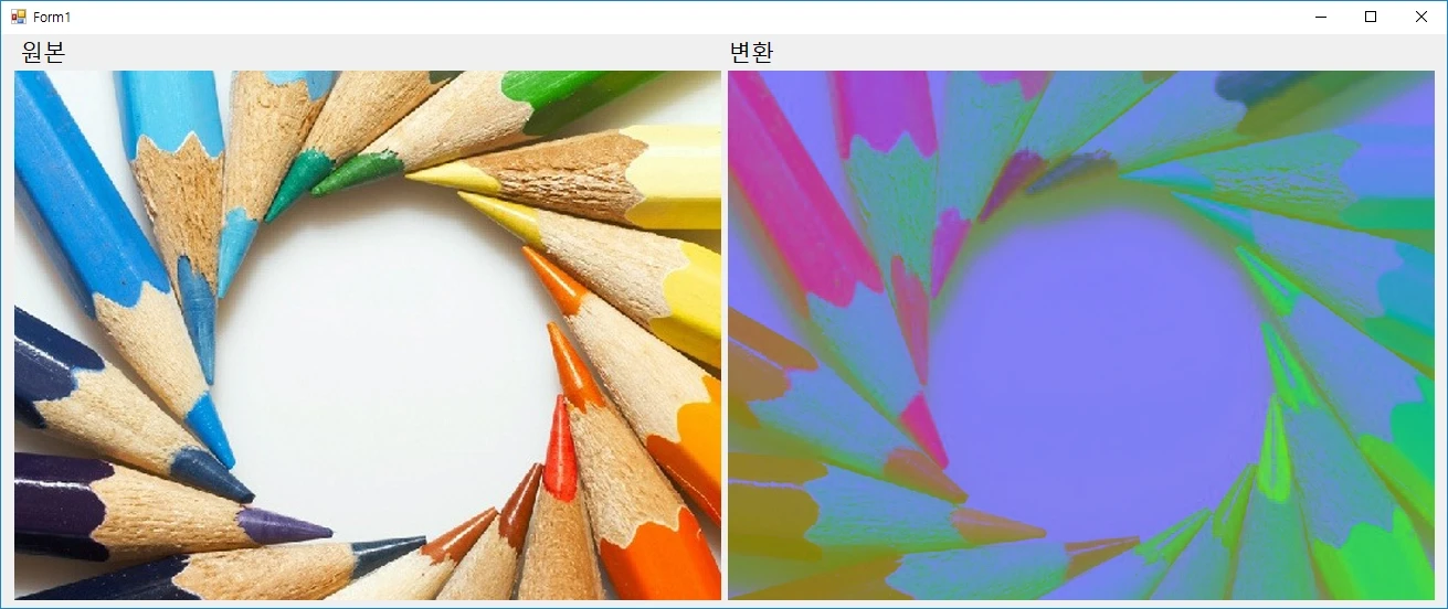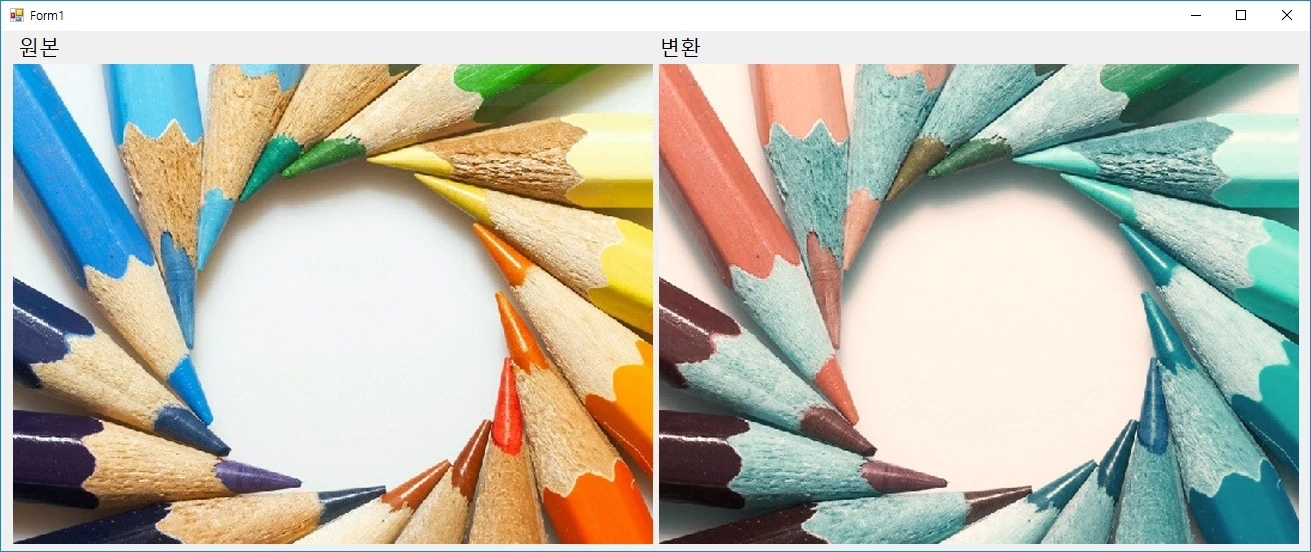 Cv.CvtColor(원본, 결과, 변환)을 의미합니다.