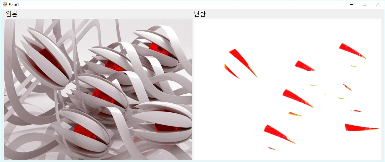 Cv.Smooth(src, blur, SmoothType.Gaussian);Cv.Smooth()를 이용하여 흐림 효과로 번지게 합니다.