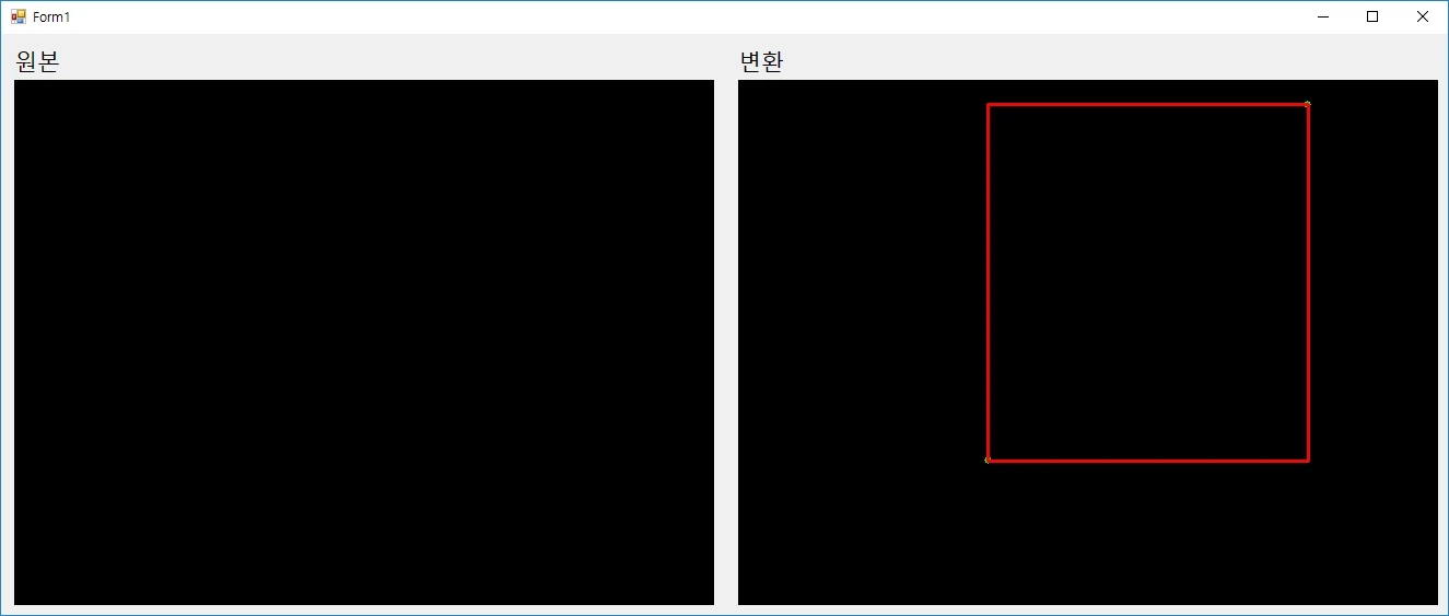 bound.Rectangle(new CvPoint(rect.X, rect.Y), new CvPoint(rect.X + rect.Width, rect.Y + rect.Height), new CvColor(255, 0, 0), 2);Cv.BoundingRect(점이 저장된 배열)를 이용하여 경계 사각형을 구합니다.