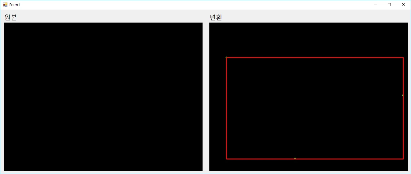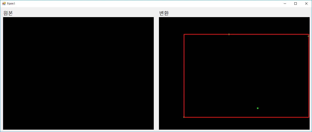 이 후, Rectangle를 이용하여 Cv.BoundingRect를 이용해 구해진 사각형의 좌표와 너비와 높이를 이용하여 시각화합니다.