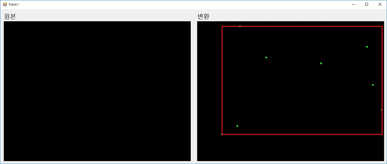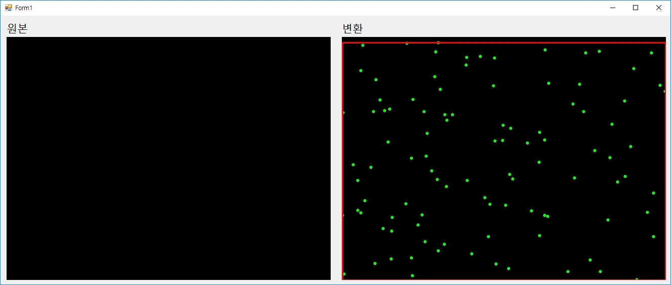 난수를 통해 얻어진 임의의 점 대신에 이미지에서 검출된 점들을 사용하여도 됩니다. 이 구문 대신에 코너, 중심점, 원 등을 대체하여 사용 가능합니다.