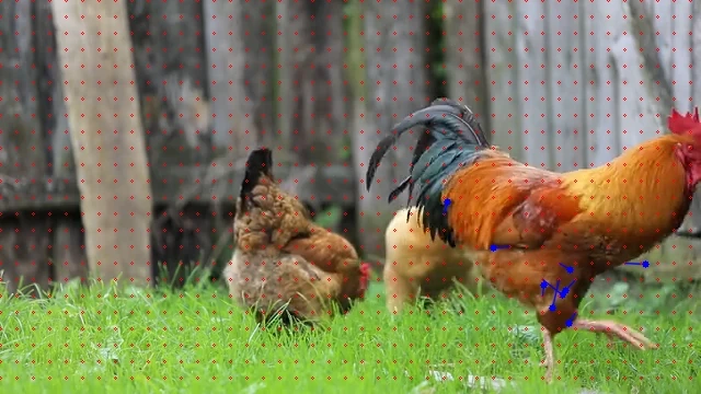 변환식에서 값을 +=15로 두어, 화면을 15 픽셀마다 광학흐름을 검출합니다.