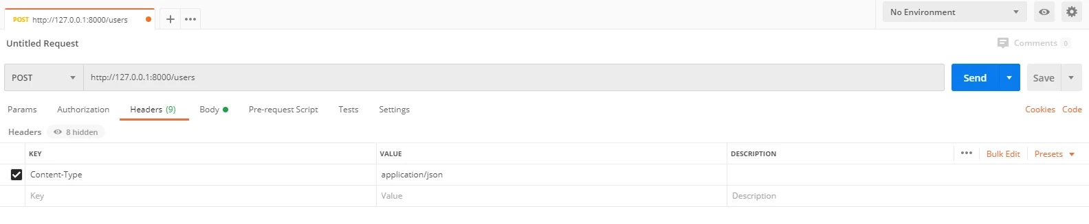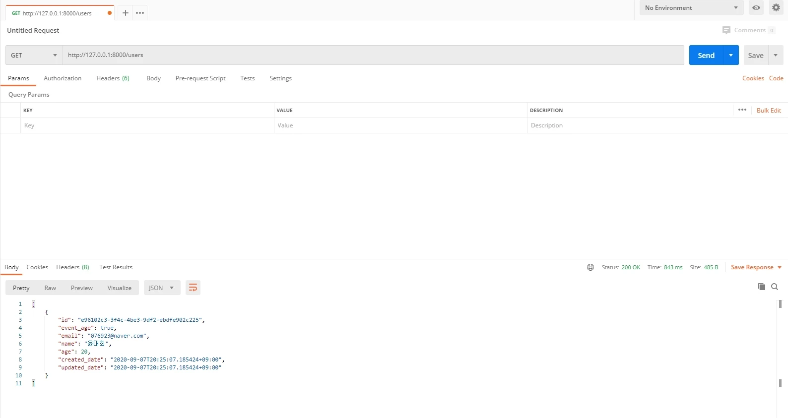 GET 메서드와 함께, http://127.0.0.1:8000/users URL을 입력합니다.