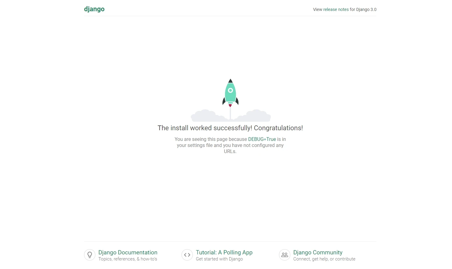테스트 프로젝트는 http://127.0.0.1:8000/에서 확인할 수 있습니다.