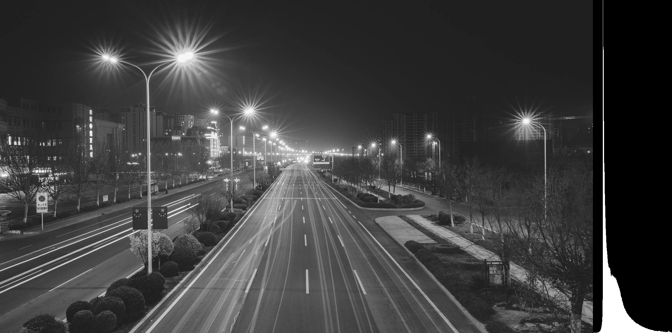 dst = np.hstack([gray, result])결과를 시각적으로 확인하기 위해, hist값을 result에 표시합니다.