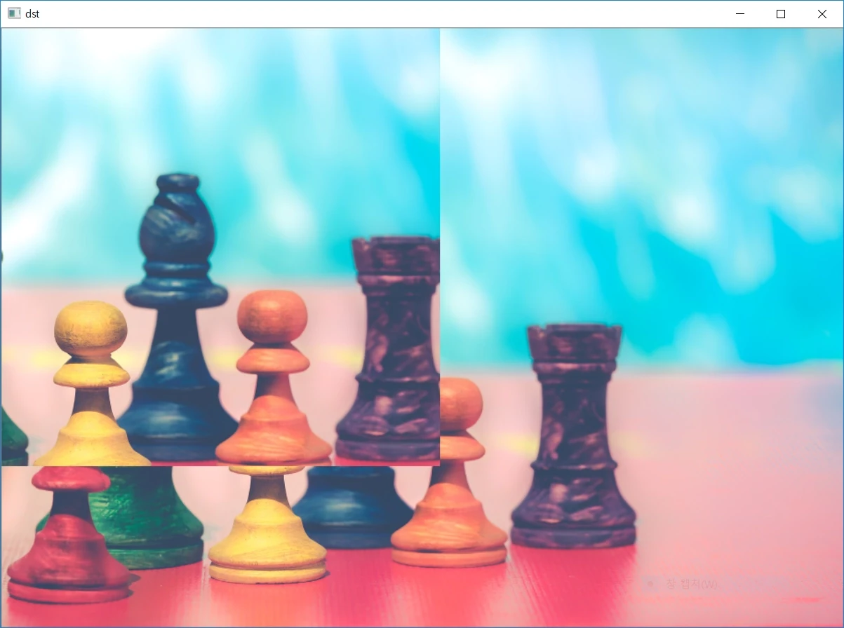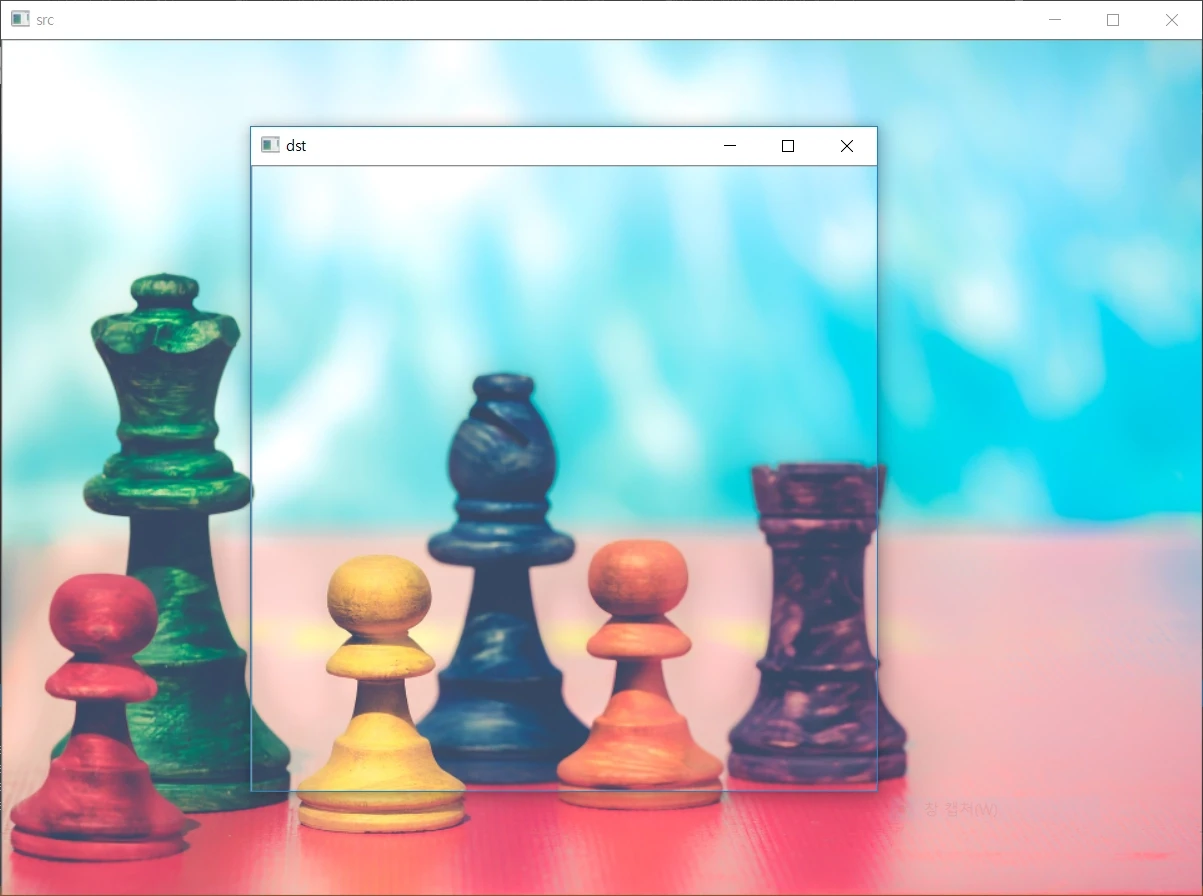 이후, dst[높이(행), 너비(열)] = roi를 이용하여 dst 이미지에 해당 영역을 붙여넣을 수 있습니다.
